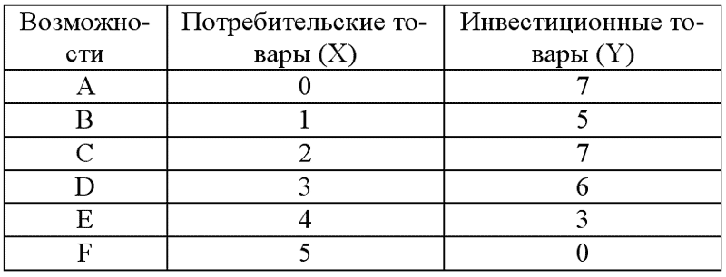 Изобразив данные на графике, получим кривую производственных возможностей (схема 8).