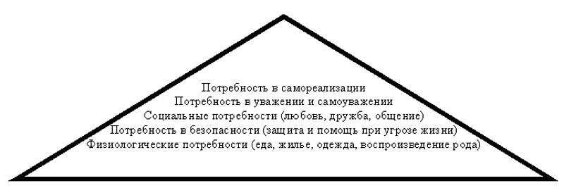 Разнообразные потребности человека изменяются в зависимости от времени и обстоятельств. Знаменитый американский социолог Абрахам Маслоу предложил специальную «пирамиду потребностей», которая описывает все возможные виды потребностей и желаний (схема 6).