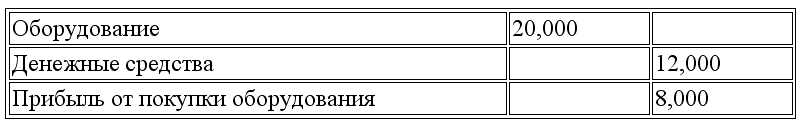 3. Оборудование приобретено на распродаже в результате ликвидации компании за $12,000, справедливая стоимость оборудования составляет $20,000.