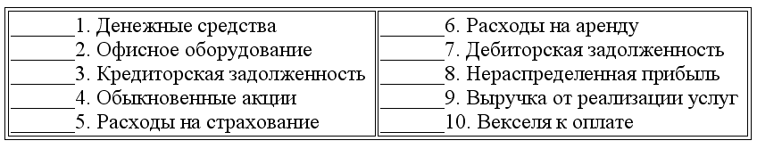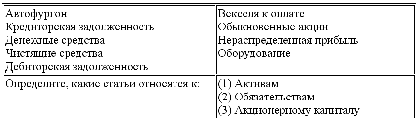 27. Укажите, какая из нижеприведенных статей относится к активам, обязательствам или акционерному капиталу, обозначив каждую статью соответствующим кодом:
