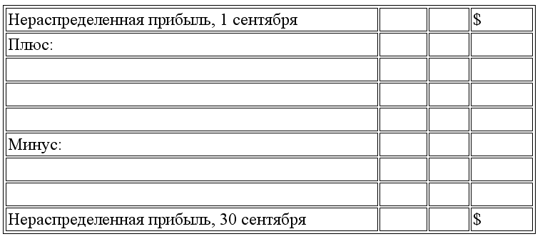34. Составьте отчет о прибылях и убытках, отчет о нераспределенной прибыли и бухгалтерский баланс компании «Бен Грэй» на основе нижеследующих данных, представленных за сентябрь 2000 г.