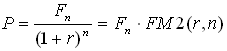 P – текущая (или приведенная) стоимость, т. е. оценка величины Fn с позиции текущего момента;
