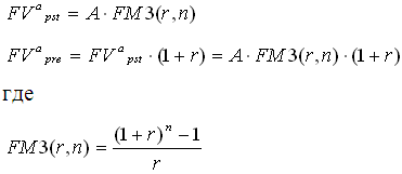 Экономический смысл FM3(r,n), называемого мультиплицирующим множителем для аннуитета, заключается в следующем: он показывает, чему будет равна суммарная величина срочного аннуитета в одну денежную единицу (например, один рубль) к концу срока его действия. Предполагается, что производится лишь начисление денежных сумм, а их изъятие может быть сделано по окончании срока действия аннуитета.
