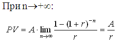 В некоторых методиках анализа инвестиционных проектов используется техника оценки бессрочного аннуитета. Аннуитет называется бессрочным, если денежные поступления продолжаются достаточно длительное время (в западной практике к бессрочным относятся аннуитеты, рассчитанные на 50 и более лет).