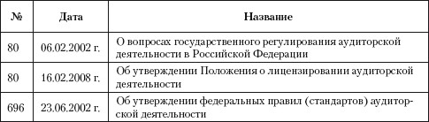 Таблица 2.1. Постановления Правительства, регулирующие аудиторскую деятельность в Российской Федерации
