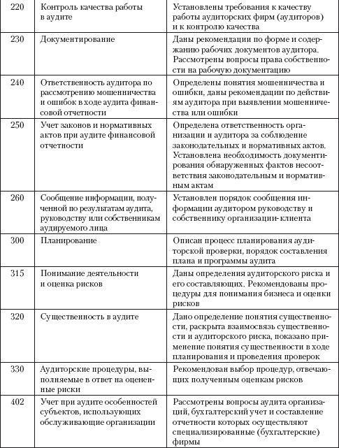 Наименования и краткое содержание международных аудиторских стандартов приведены в табл. 2.3.