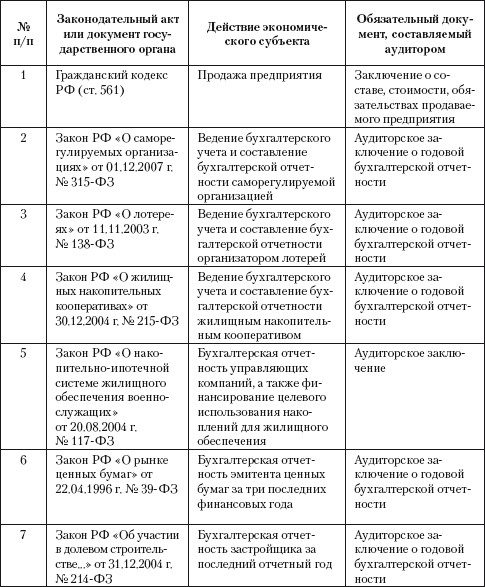 Рядом законодательных и нормативных актов Российской Федерации прямо установлена обязательность аудита для некоторых экономических субъектов.
