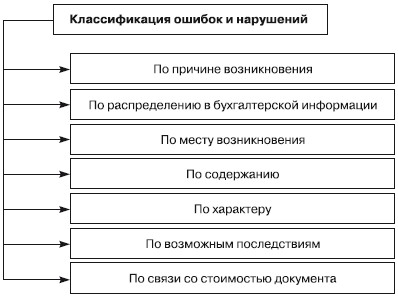 В связи с изложенным с целью получения рекомендаций, позволяющих осуществлять выбор конкретных аудиторских процедур, рассмотрим возможные классификации ошибок и нарушений.