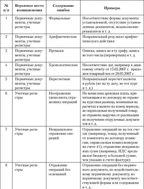 Размер ошибок второй группы не связан со стоимостью документа. Такими ошибками могут быть арифметические, пересчетные и др.
