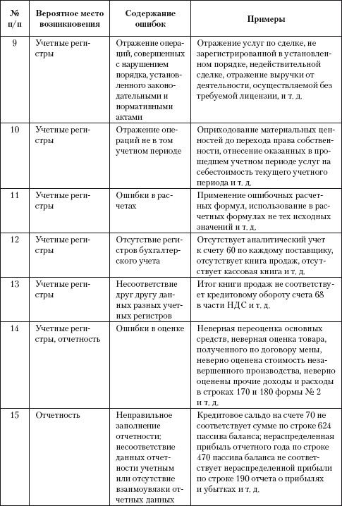 Качественными являются, например, следующие ошибки и нарушения, указанные в табл. 3.1: