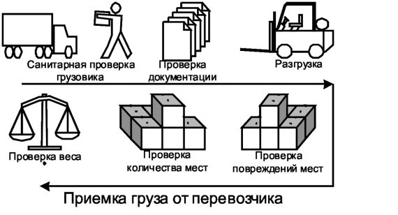 – выгрузка и приемка товаров по количеству мест и весу (проверка соответствия количества мест данным сопроводительных документов);