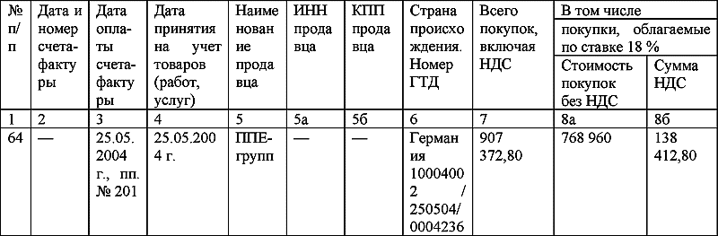 Запись в Книге покупок будет выглядеть так (см. табл. 1).
