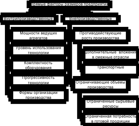 Рис. 3.1. Факторы, непосредственно влияющие на размеры промышленных предприятий
