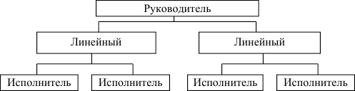 Линейная структура управления – структура управления, в которой разделение системы управления на составляющие части осуществляется по производственному признаку с учетом степени концентрации производства, технологических особенностей, широты номенклатуры продукции и других признаков (рис. 5.1). В настоящее время линейные структуры используются крайне редко, как правило, в рамках задач малого бизнеса.