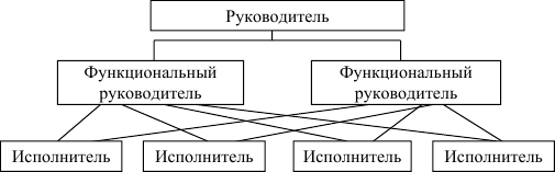 Функциональная структура управления – структура управления, при которой руководители функциональных подразделений специализируются в определенной деятельности и отвечают за реализацию соответствующих функций (рис. 5.2). Область применения функциональной структуры управления – это однопродуктовое предприятие; предприятия, реализующие сложные и длительные инновационные проекты; средние узкоспециализированные предприятия; научно-исследовательские и проектно-конструкторские организации; крупные специализированные предприятия.