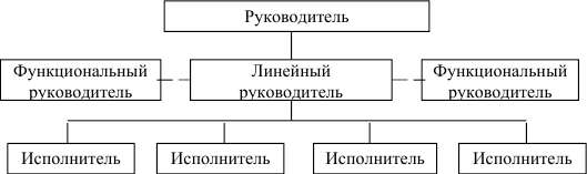 Линейно-функциональная структура управления сочетает в себе как линейные, так и функциональные принципы организации взаимосвязи между производственными и управленческими элементами систем (рис. 5.3). При этом линейные звенья управления призваны командовать, а функциональные – консультировать, помогать в разработке конкретных вопросов и подготовке соответствующих решений, программ, планов. Основой линейно-функциональных структур является шахтный принцип построения, когда на каждую из функций – линейную или штабную – формируется иерархия служб (шахта), пронизывающая сверху донизу всю организацию. Линейно-функциональная структура иногда называется традиционной, или классической, поскольку она чаще всего применяется для построения любых организаций среднего размера.