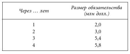 Предположим, что управляющий пенсионным фондом хочет инвестировать некую сумму денег, достаточную для исполнения обязательств фонда. Известно, что любая сумма денег, инвестированная в настоящий момент, может принести 7,6 % годовых. Сколько следует инвестировать сегодня, для того чтобы удовлетворить поток долговых обязательств?