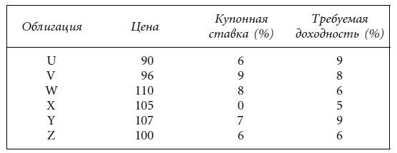 Вам кажется, что в таблице есть несколько ошибок. Не подсчитывая точное значение цены каждой облигации, скажите, цены каких облигаций указаны неверно и почему.