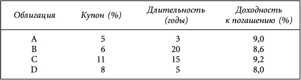 Рассмотрим теперь первое условие: необходимость держать облигацию до момента погашения. Предположим, что инвестор, решивший вложить капитал на пять лет, выбирает одну из четырех облигаций:
