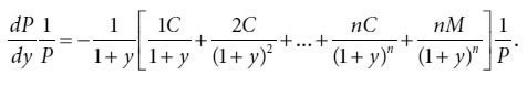 Для выяснения примерного изменения цены при небольшом изменении доходности следует вычислить первую производную выражения (4.1) по требуемой доходности: