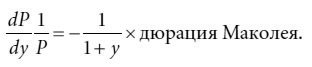 Выражение в скобках, деленное на цену (в нашем случае умноженное на 1/Р), принято называть дюрацией Маколея[19], таким образом: