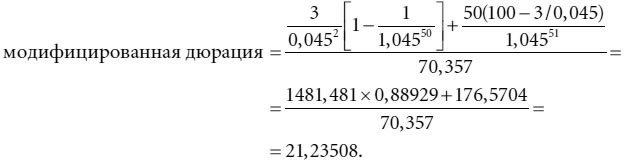 Переведем значение в годы: поделим результат на 2 и получим 10,62 – модифицированную дюрацию. Умножим на 1,045 и получим 11,10 – дюрацию Маколея.