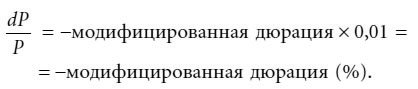 Модифицированная дюрация, таким образом, может быть интерпретирована как аппроксимированное процентное изменение цены при изменении доходности на 100 базисных пунктов.