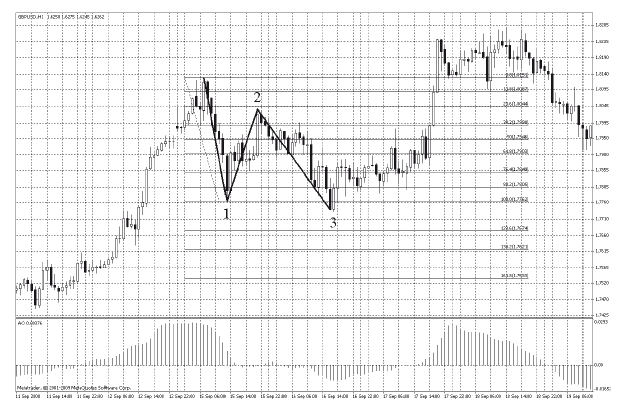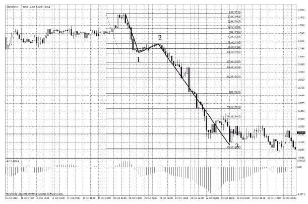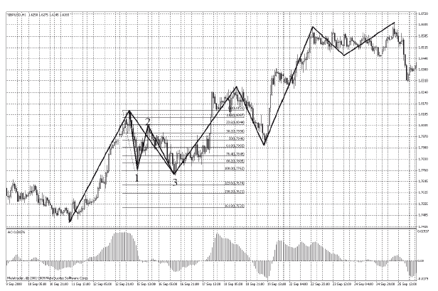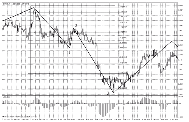 Обратите внимание на структуру волны, изображенной на рис. 37. Вторая волна отработала ровно 50 %, а третья – 200 %. Это самая распространенная ситуация формирования третьей волны на меньшем ТФ (например, Н1) по ходу движения старшего ТФ (например, Н8).