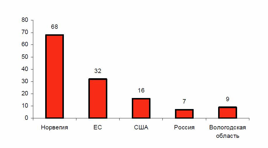 Объемы государственной поддержки агросектора региона были в 7,5 раз ниже, чем в Норвегии, в 3,5 раза меньше по сравнению со странами ЕС (рис. 1). Острой остается также проблема дефицита кадров, способных осваивать передовые достижения научно-технического прогресса, неразвитости инновационной инфраструктуры. Эффективная проводящая сеть от науки к производству по-прежнему не сформирована, поэтому научные исследования и освоение их результатов в производстве существуют как бы в «параллельных мирах».