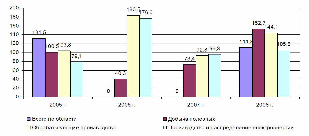 – низкая рентабельность (за период с 2003 г. по 2009 г. рентабельность продукции промышленных предприятий имеет хроническую тенденцию снижения. Так, рентабельность продукции добывающих предприятий снизилась на 2,8 % и составила 1,1 % (в среднем по РФ она увеличилась на 10,5 % до 29,7 %); продукции предприятий обрабатывающих производств снизилась на 31,8 % и составила 14,1 % (в среднем по РФ она увеличилась на 0,1 % до 12,5 %); продукции предприятий по производству и распределению электроэнергии, газа и воды снизилась на 5 % и составила 5,3 % (в среднем по РФ она увеличилась на 1,2 % до 7,6 %)).
