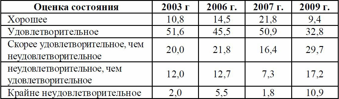 – дефицит финансовых ресурсов (по данным опроса в 2009 году 28,1 % руководителей предприятий отмечают крайне неудовлетворительное и неудовлетворительное финансовое состояние [2]).