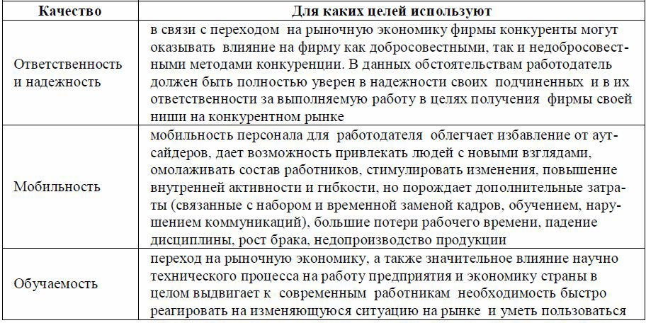 Таблица 3. Современные качества трудовых ресурсов