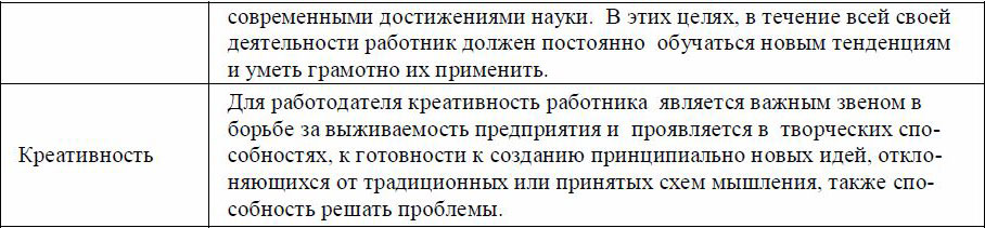 • увеличение инвестирования в новые исследовательские разработки. В данном аспекте следует отметить тот факт, что для его реализации потребуются не только значительные материальные затраты, но и активное использования человеческого капитала предприятия. В связи с этим, следует отметить важность развития у работников не только общепрофессиональных качеств, но и таких качеств как креативность и инновационность (таблица 3).