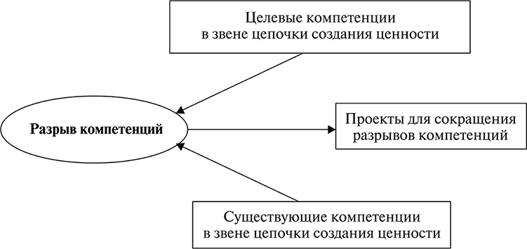 Общая идея методики заключается в движении от процесса декомпозиции целей компании в разрезе цепочек создания ценности (рис. 5.16) к определению целевых разрывов и проектов по их преодолению в упомянутых цепочках (рис. 5.17).