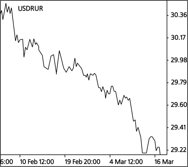 Торги на валютном рынке идут круглосуточно, и цена валюты постоянно меняется (растёт или падает)