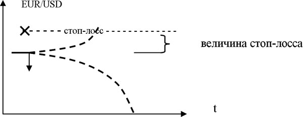 Предположим, трейдер получил от своей торговой системы сигнал, что цена (курс) валюты будет расти. Он покупает её с целью потом продать по более высокому курсу и получить прибыль. А курс вдруг пошёл не вверх (как того хотел трейдер), а вниз (торговый сигнал оказался ложным). На сколько пунктов курс (цена валюты) упадёт – столько пунктов убытка трейдер получит. Если трейдер купил валюту, а её цена начала не расти, а падать, трейдер должен признать, что торговый сигнал оказался ложным, и должен сделку закрыть. Да, закрыть с убытком. Это, конечно, неприятно, но… этот убыток будет небольшим, и следующая сделка, вполне вероятно, окажется прибыльной. И эта прибыль компенсирует предыдущий убыток.