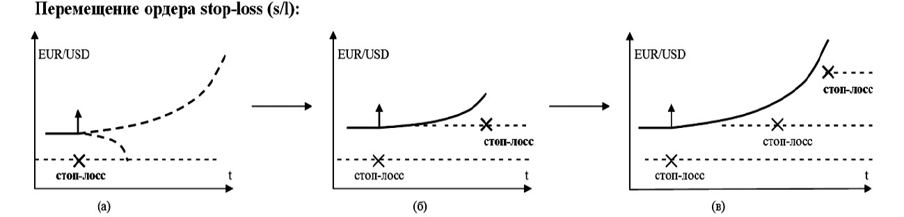 Важный момент: ордер s/l следует передвигать только вслед за движением цены. Если же цена приближается к s/l, то отодвигать его от текущей цены (тем самым увеличивая размер потенциального убытка) ни в коем случае нельзя.
