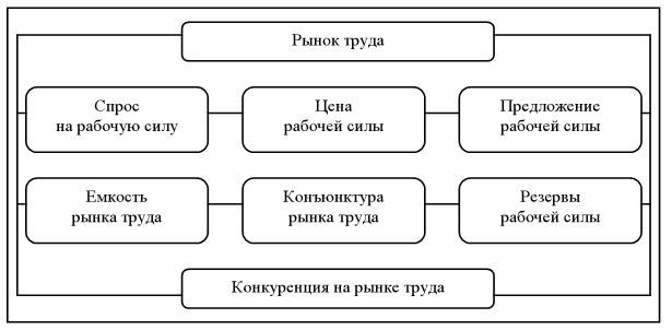Рынок труда – система общественных отношений, связанных с наймом и предложением труда, т.е. с куплей и продажей; экономическое и географическое пространство – сфера трудоустройства, в которой взаимодействуют покупатели и продавцы специфического товара – труда; механизм, обеспечивающий согласование цены и условий труда между работодателями и наемными работниками.