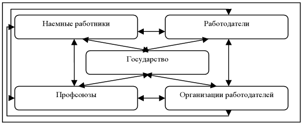 1) внешний – система социально-трудовых отношений между наемными работниками и работодателями в масштабе страны, региона, отрасли;
