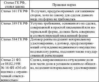 В некоторых случаях требуется нотариальное заверение сделки. Рассмотрим случаи, когда требуется нотариальное заверение сделки (табл. 3).
