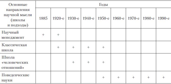Таблица 2.1. Эволюция управленческой мысли в ХХ в. [11]