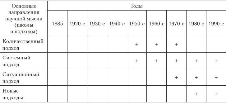 Существование во времени основных направлений и подходов отображено в табл. 2.1.
