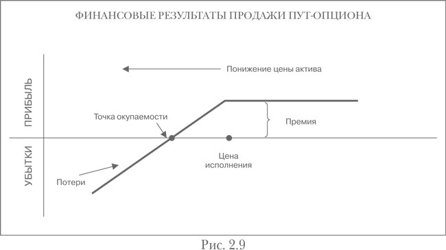 Профили результатов продажи опционов колл и пут представлены на рис. 2.7 и 2.9.