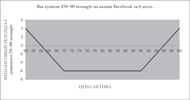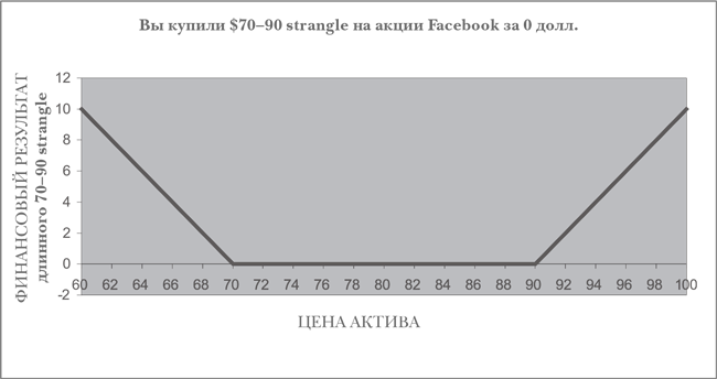 2) Вы купили $70–90 strangle на акции Facebook. Постройте график вашей (длинной) позиции: