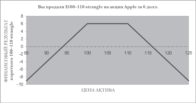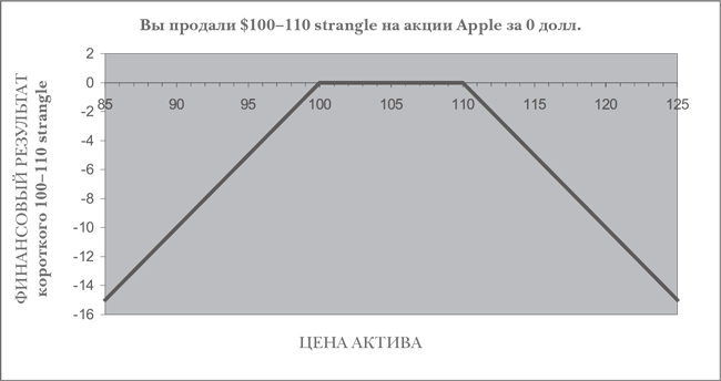 3) Вы продали $100–110 strangle на акции Apple. Постройте график вашей (короткой) позиции: