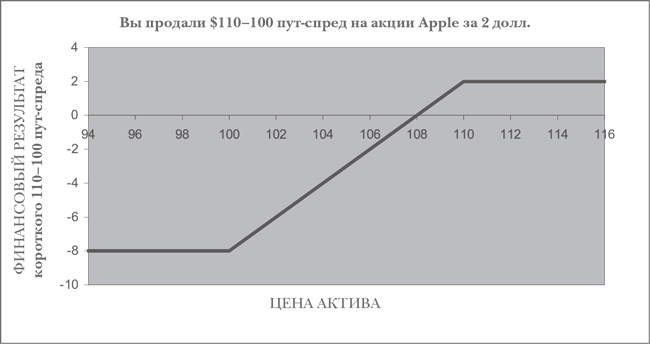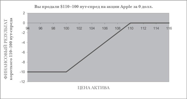 6) Вы продали $110–100 put spread на акции Apple. Постройте график вашей (короткой) позиции: