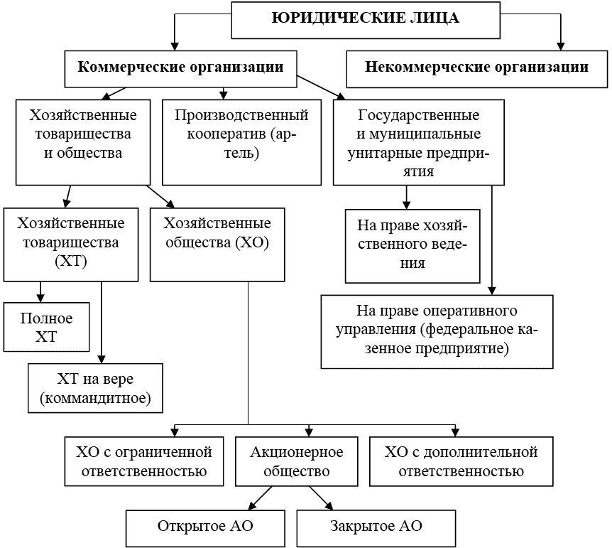 В соответствии с ГК юридические лица, являющиеся коммерческими организациями (п. 2 ст. 50), могут быть созданы в форме хозяйственных товариществ и обществ, производственных кооперативов, государственных и муниципальных унитарных предприятий.