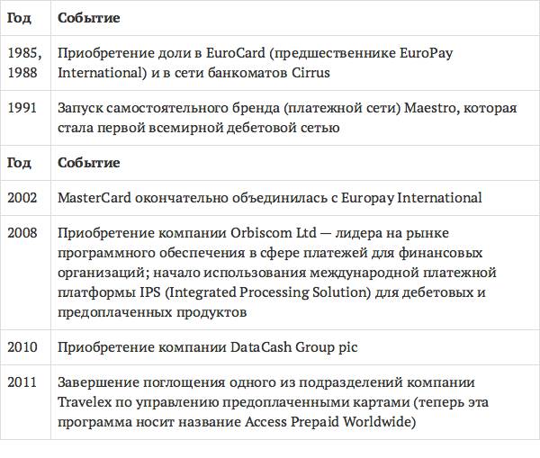 Основные этапы развития MasterCard за период с 1985 по 2011 год