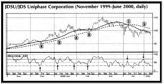 Также, для выделения реакций на трендовом рынке, могут быть использованы осцилляторы. Опять, чем короче период осциллятора, тем больше потенциальных торговых входов. Низы цикла имеют тенденцию совпадать с более глубокими областями перепроданности, которые может индицировать осциллятор с большим периодом. Сделки, осуществленные в низах цикла, обычно могут удерживаться более длительное время.