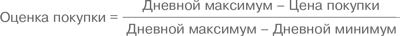 Результат рассчитывается в процентах: если вы купили на минимуме дня, оценка составит 100 %, а если на вершине – 0 %. Все, что ниже 20 %, плохо, выше 50 % – хорошо, выше 80 % – отлично.